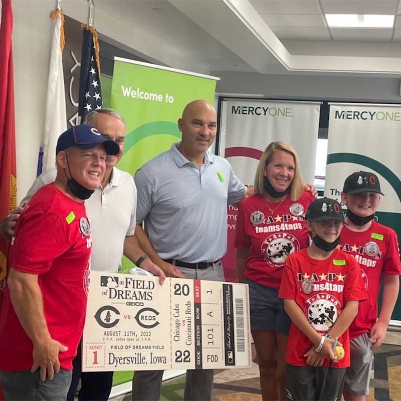 Dubuque, Iowa – MercyOne is excited to once again welcome Major League Baseball to MercyOne Dubuque Medical Center ahead of the Field of Dreams game taking place tonight in Dyersville, Iowa. Earlier today, MercyOne had the privilege to host Commissioner of Baseball Rob Manfred to surprise three families with ticket packages to this exclusive experience: