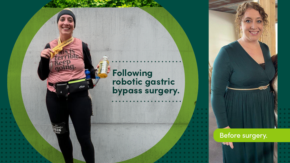 Robotic surgery was a great option for Megan. Before bariatric surgery, she weighed 247 pounds. Today, she weighs 172 pounds.